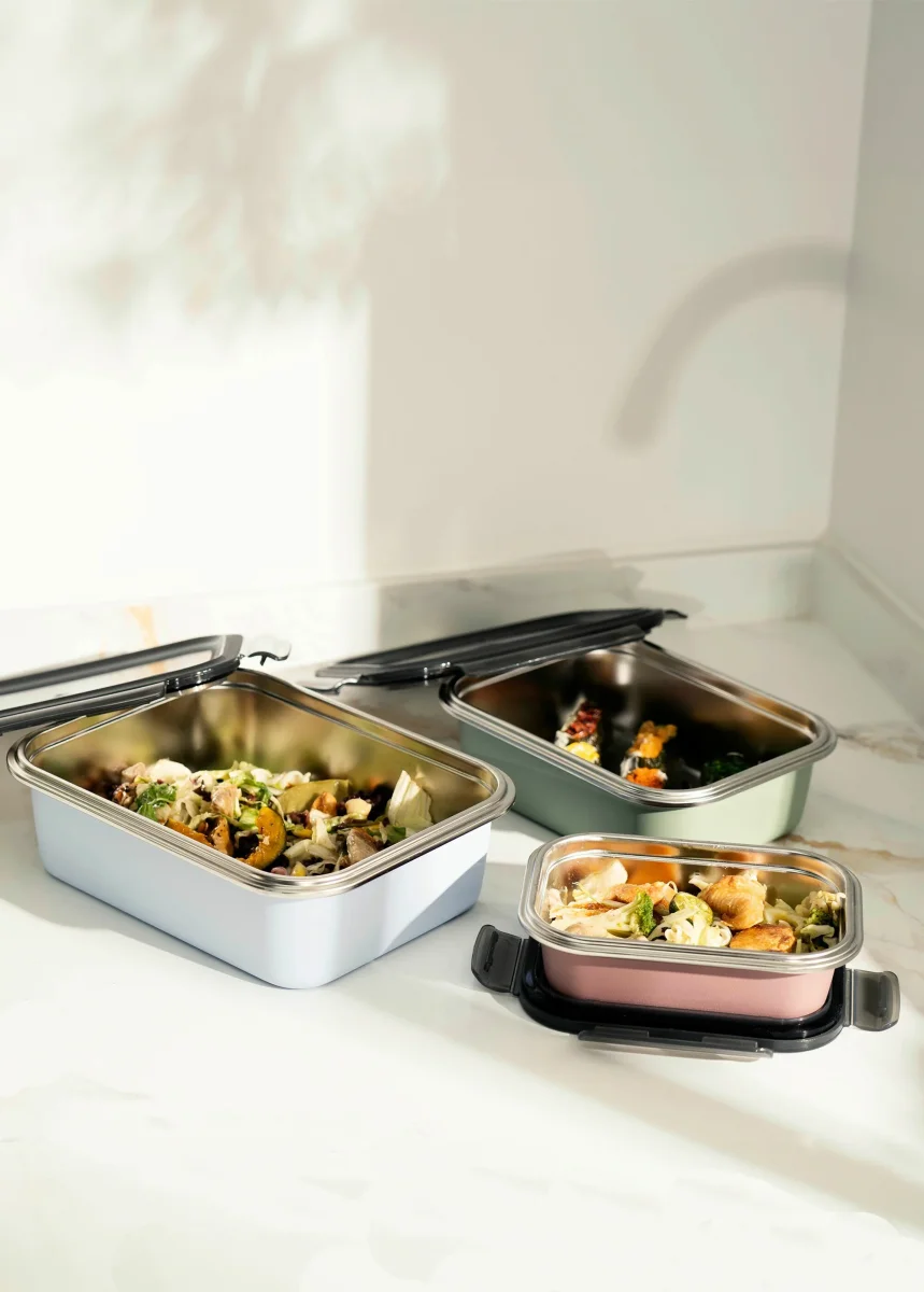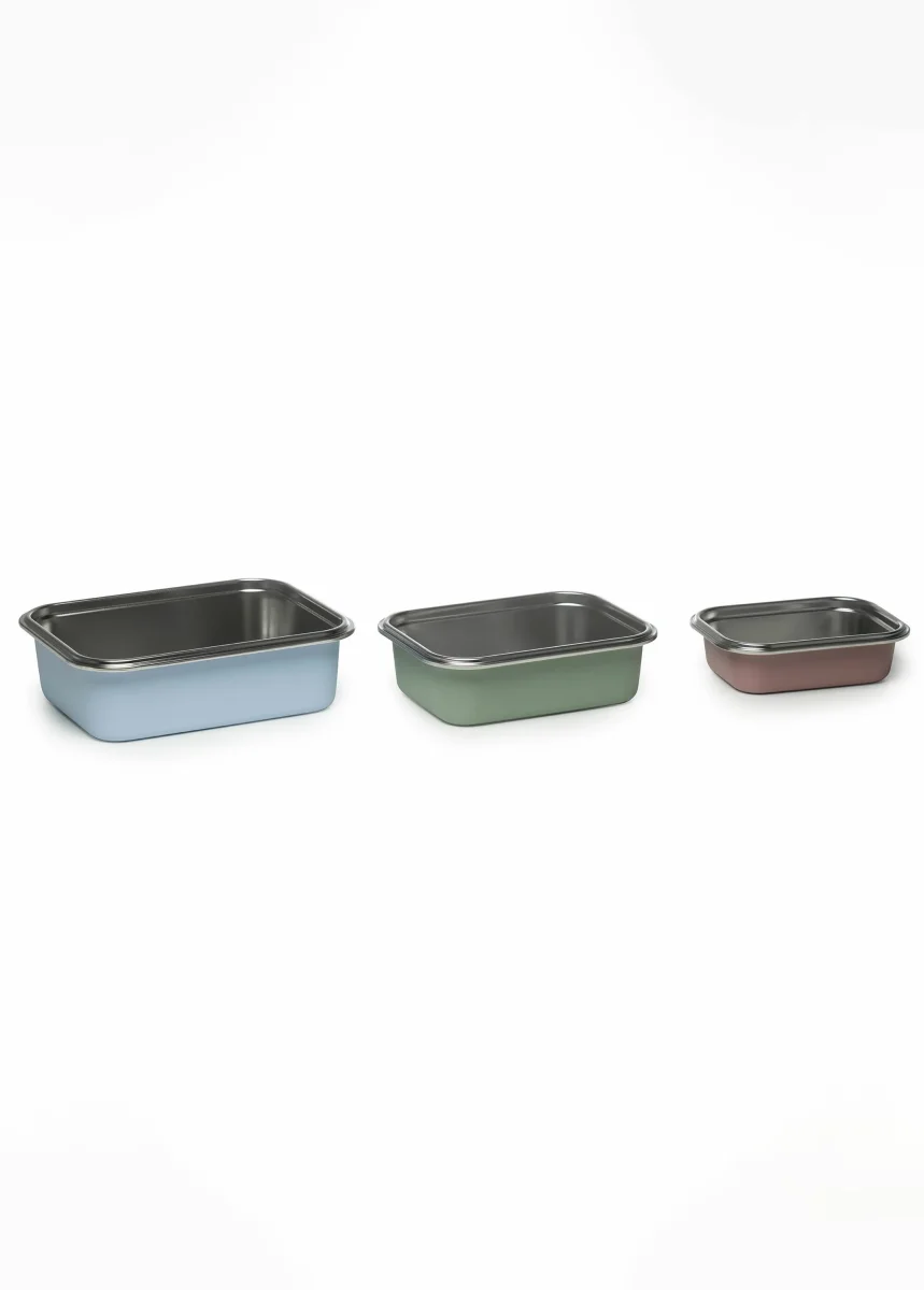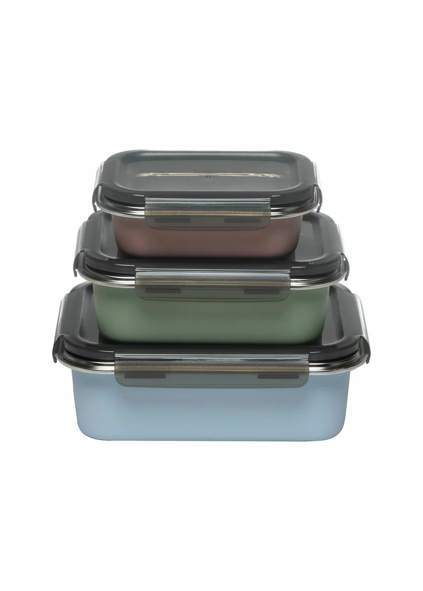 Set comprenant : 1 Boîte rectangulaire 17 X 13 X 5,8 cm, capacité : 650 ml + 1 Boîte rectangulaire 21 X 16 X 7,9 cm, capacité : 1,3 L + 1 Boîte rectangulaire 24 X 19 X 8,3 cm, capacité : 2,25 L – Fabriqué en acier inoxydable, extérieur coloré – Sans BPA – Leurs couvercles hermétiques à clips évitent les fuites et protègent le contenu du givre, rendant ces récipients parfaits pour le transport ou la conservation des aliments.