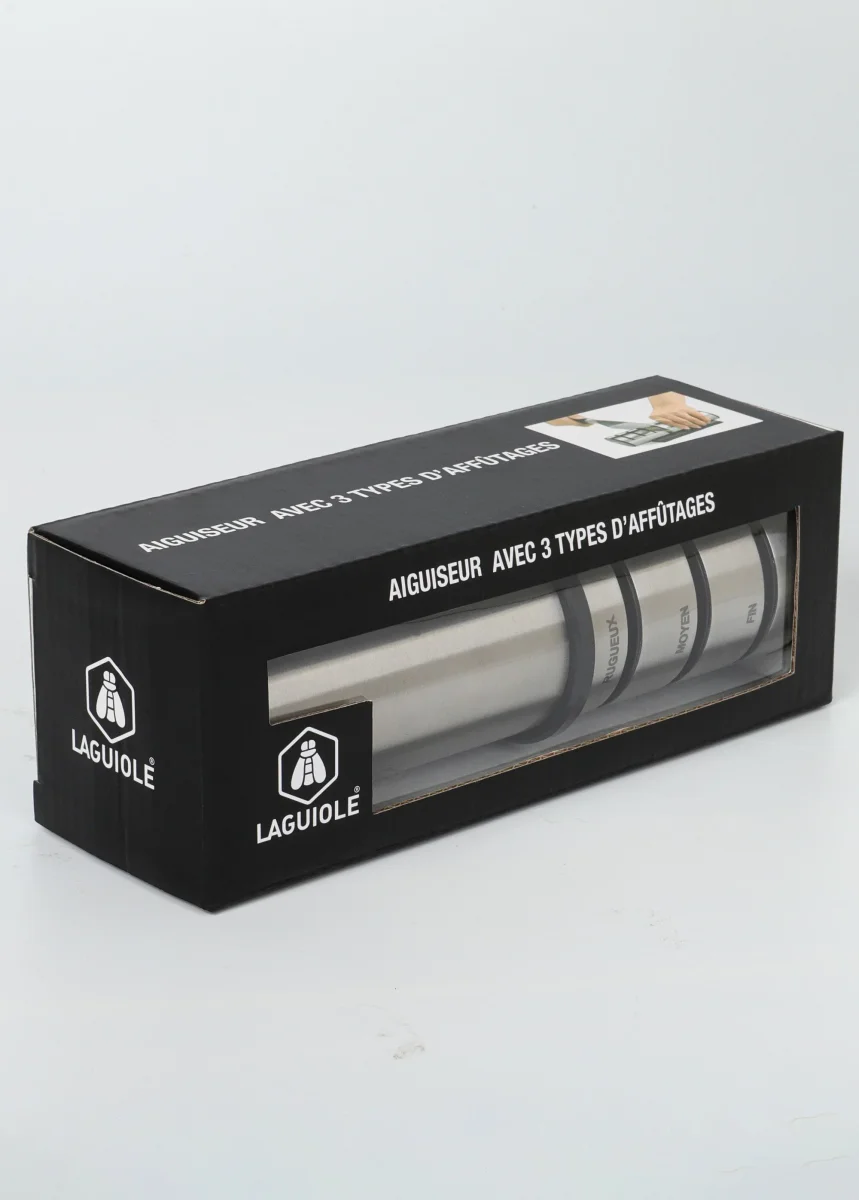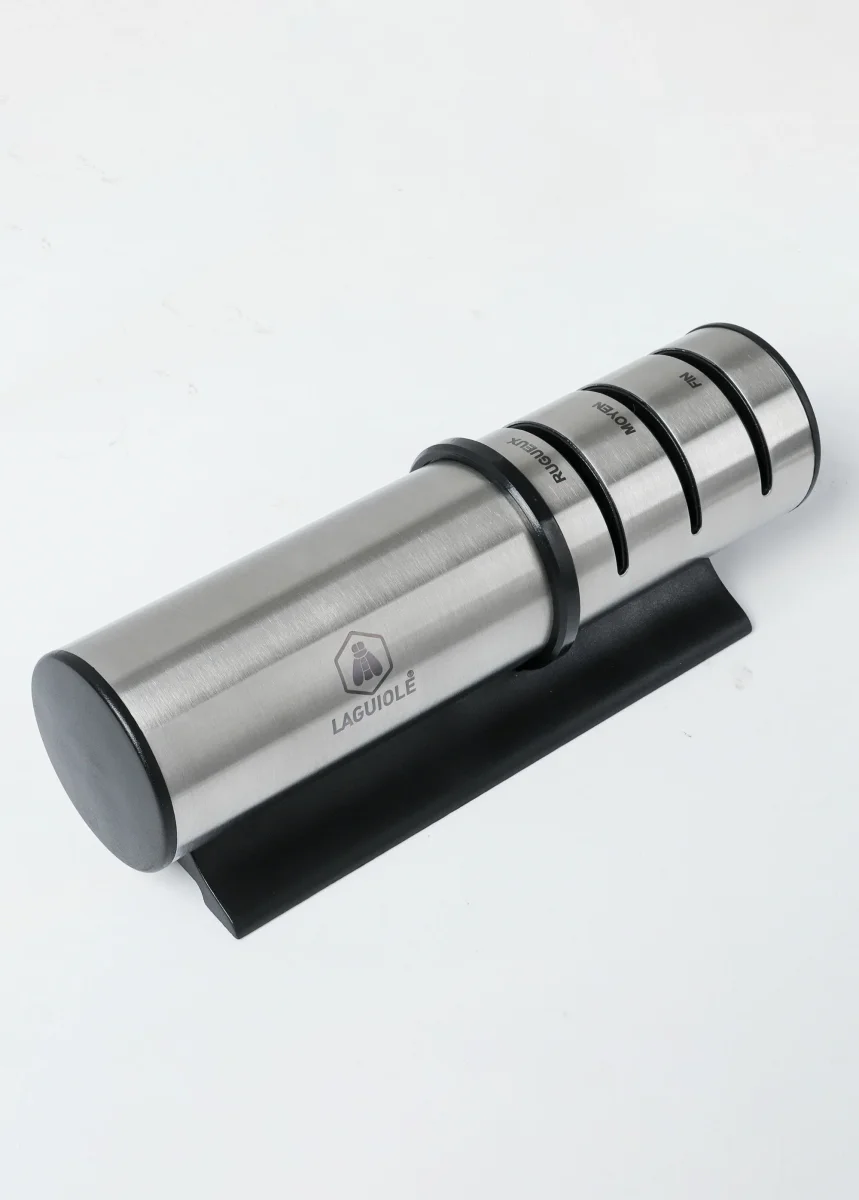 Aiguiseur avec 3 systèmes d’affûtage : grossier, moyen et fin. Système de haute qualité, utilisable sur les couteaux de cuisine en métal. Ses 3 systèmes d’affûtage (grossier, moyen et fin), permettent d’aiguiser et de réparer les lames parfaitement. Design de roue à aiguiser unique, pratique pour aiguiser dans les deux sens.